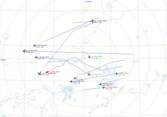 | こんな楽しい軌跡が楽しめます。空港の近くで受信出来る場合はもっと面白い軌跡が見えるかもしれません。 | |
