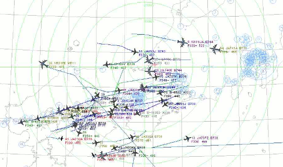 | どうでしょう。ものすごい数の航空機を捕らえました。80機以上です。遠くは山口県まで見えてます。なぜか瀬戸内海上空が多いです。自宅では体験出来ない状態で、少し興奮気味。 | |