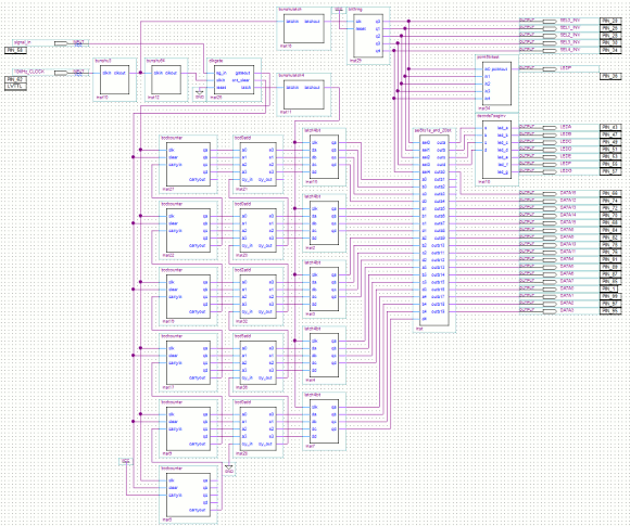 | 電源のDC3.3VはCPLD基板よりもらいます。7セグメントはそのままCPLDに接続します。ダイナミック点灯しています。 | |