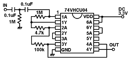 | CPLDの入力にはバッファを設けます。信号の増幅を行っています。これも従来からの同じ回路です。 | |