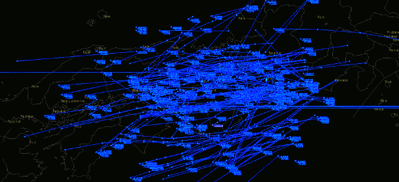 | フェデックスは複数のプロットを送って来るので受信の目安にはなりにくのですが、JALとかANAでは西は山口県、東は山梨県・静岡県あたりでしょうか。もう少し延びて欲しいですが、マンションの向きが西向きで仕方がない部分もあります。私的には同一機での東から西への長距離プロットを目指しています。 | |