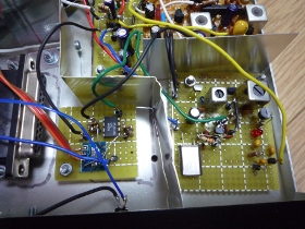 | アナログ部とデジタル部、シングルスーパーヘテロとダブルスーパーヘテロ間はアルミ板でシールド(気休めか?)しています。 | |