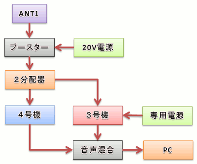 | 自宅でのダブル受信の構成は次の通りです。 | |