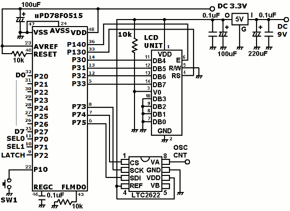 | マイコンとの接続は少ない本数でシンプルですね。 | |