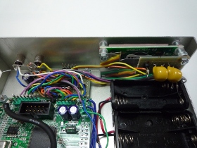 | 以前の製作でも書いていますが、このOLED表示モジュールはかなりのノイズを出します。電源フィルタとアルミのシールドは必ず必要です。 | |