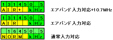 | (左からエアバンド受信周波数、局発周波数、1/8周波数) | |