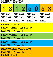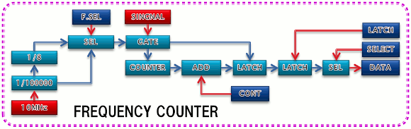 | CPLDからの周波数の読出しは4回に分けて行います。最下位の桁は読み出せませんのでダミーとしています。 | |