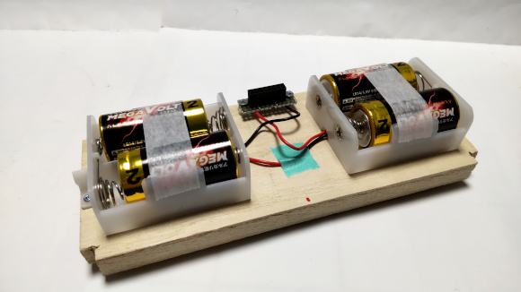 | 動作時間を伸ばす為に電池は単二サイズにしました。このサイズの電池ボックスはアマゾンでポチリました。結構探すのに苦労しました。 | |