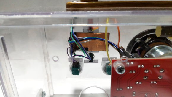 | 透明ケース側との接続にはピンヘッダーとソケットを使っています。この辺りの位置合わせは現物で行って穴加工しましょう。 | |