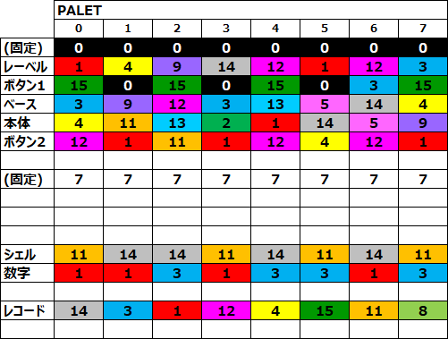 | (8種類のパレット) | |
