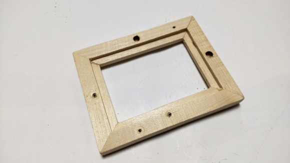 | マイコンボードが液晶のすぐ背面に設置されるので、中身はとてもスッキリとしました。マイコンボードの周辺回路はユニバーサル基板で組みました。たまには良いですね。 | |