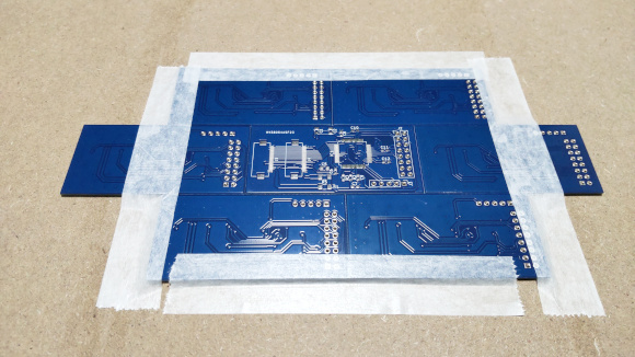 | 基板を別基板で囲って抑え込み、周囲の基板をしっかりとテーピングして動かないようにします。 | |