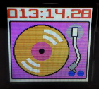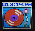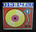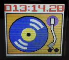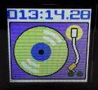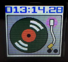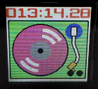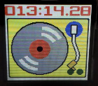 | 液晶はこんな感じで見えます。パレット色を変更することで、画像のバリエーションが増えます。好みの色合いでお使い下さい。上の画像はレコードプレーヤーが動いていない時のものです。動いている時はレコードが回転しているように見えるようにしています。う〜〜ん、楽しい。 | |