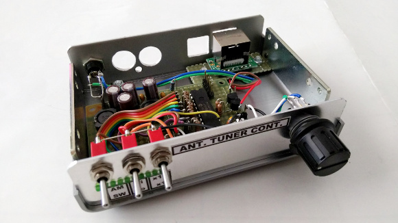 | ポイントは室内には操作ユニットのみを配置して、アンテナチューナーを制御するユニットは屋外に置いてアンテナチューナーのより近くで制御をするという方式です。今までは室内からアンテナチューナーを制御していたのでその間が長いとノイズが飛び込んで悪影響を与える恐れがありました。室内にもノイズ源があり、そのことも気になっていました。今回制御ユニットを屋外に置いてアンテナチューナーに近づけることで、それらの影響を排除出来るのでは考えました。 | |