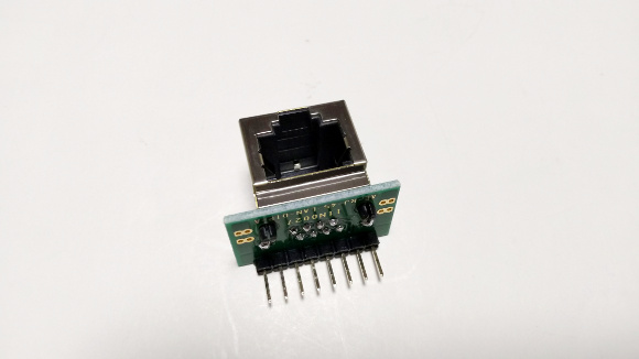 | LANケーブル用のジャックはピン配置が千鳥ですので、変換基板込みで購入するほうが良いと思います。私は秋月さんで購入しました。 | |