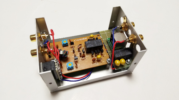 | ケースはGNDにしていますので、RCAジャックのGND側はケースに取り付けています。中波用と短波用です。 | |
