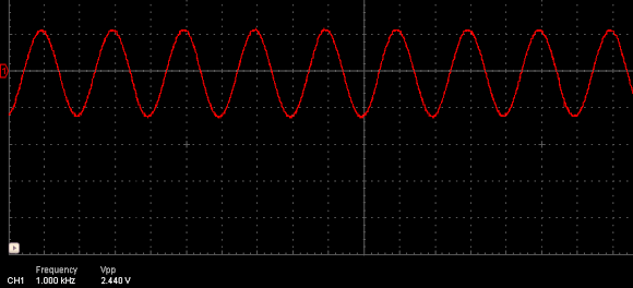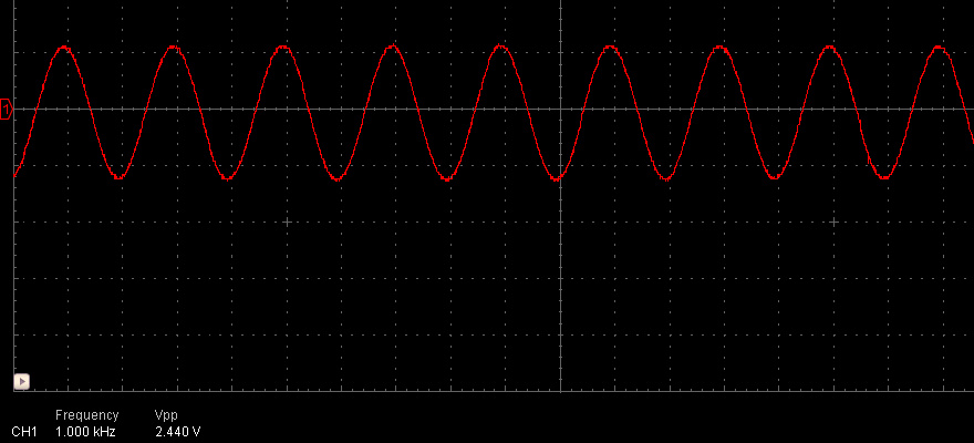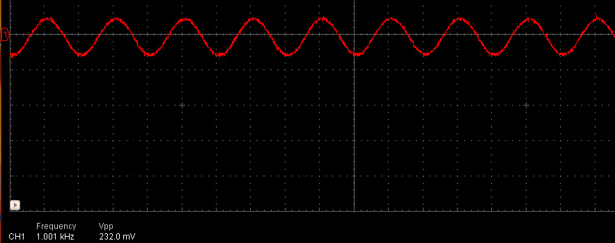 | なんとか満足出来る波形になっているのではないでしょうか。でも正直なところ出力電圧が低い時のノイズ感がもう少し減ってくれれば良かったなと思います。 | |