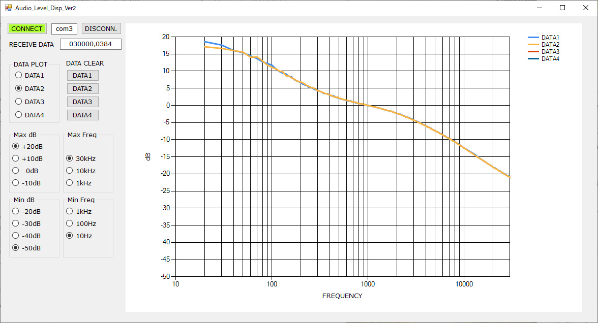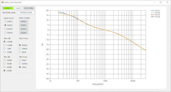 | インターフェイスを介してPCに送られたデータはVBアプリでグラフ化出来ます。これも後日の記事で説明させて頂きます。 | |