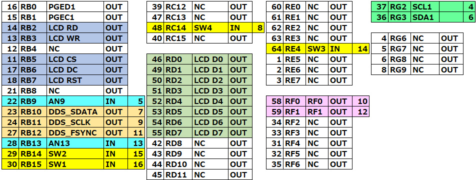 | EEPROMを接続するために一部の割付を変更しました。SW3,SW4のポートを移動しました。これでマイコン基板から取り出してるポートを全て使用したことになります。 | |