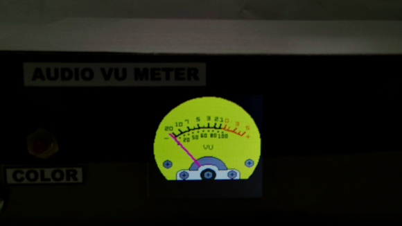 | マジョカアイリスの小さい液晶の応用製作です。今回はオーディオVUメーターにしました。アナログメーターを液晶表示(128x128)で再現しました。内部はデジタルなんで、疑似アナログになりますが、完成した姿はこんな感じです。 | |