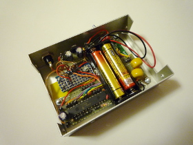 | (中身はすっきり、内部電池とACアダプタ切り換えのスイッチを配置) | |