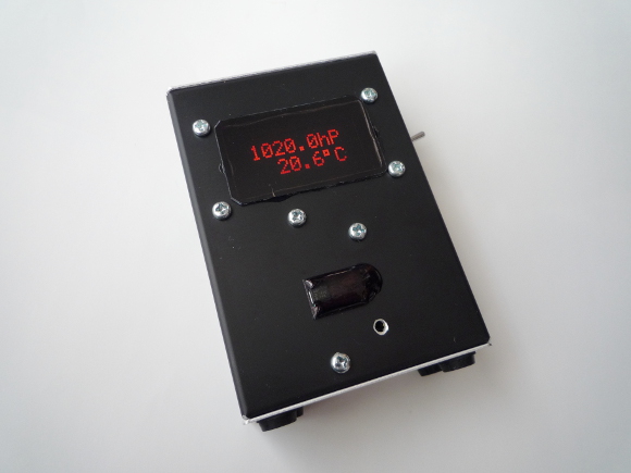 | 今年は台風の多い年でした。そこで来年の台風に備えて、「気圧計」を作りましょう。台風の接近を正しく知るためには気圧の変化を知るのが一番です。各地の気象観測所には気圧計が備えられており、ネットでも知ることは出来ますが、距離が離れていたり、発表時間の都合から、リアルタイム性が完全とはいえません。昔、親から聞いた話ですが、秋の夜に、台風が近づいてくると、こおろぎなどの虫が全く鳴かなくなり、たとえ強風が吹いていたり、雨が降っていても、台風が去ったとたんに、鳴き始めると。これは虫が敏感に気圧の変化を捉えていることを表していると思います。自宅で気圧の変化を知ることが出来ると、それなりの備えが可能になります。今回は気圧だけでは寂しいので、温度も測定して表示することとします。 | |