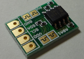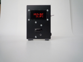 | 秋月で購入した気圧センサーです。出力値は極めて安定しています。マイコンとはI2Cで接続します。24bitのデータを4096で割ると大気圧がそのまま求められます。出力数値が安定しているので私は小数点1桁まで表示することとしました。 | |
