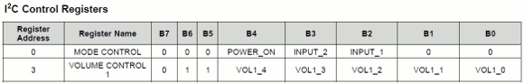 | ADR端子の設定をそれぞれ違えることでステレオのLとRを制御します。このICはモノラルアンプですが、入力が2系統あります。それを指定する必要があります。ICの電源ONと同時に行います。ボリューム操作と合わせて見て下さい。 | |