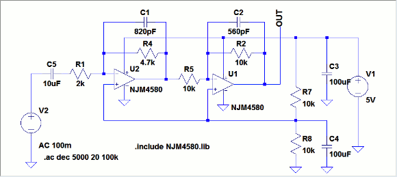 | OPアンプのフィルター特性を一応確認しておきます。 | |