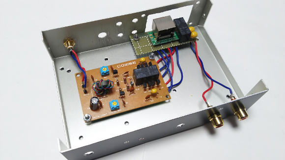 | こちらがラジオ側になります。制御端子のコネクタとアンテナ出力を前面にもってきました。 | |