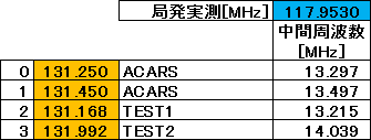 | コンパクト1号機=131.250MHz(J型)、コンパクト2号機=131.450MHz(QFH) | |
