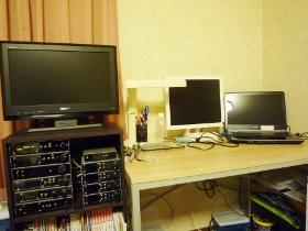 | (液晶テレビの下に自作受信機のオンパレード) | |