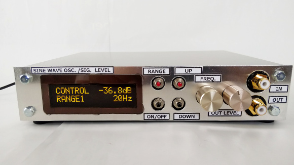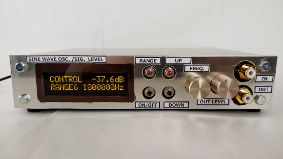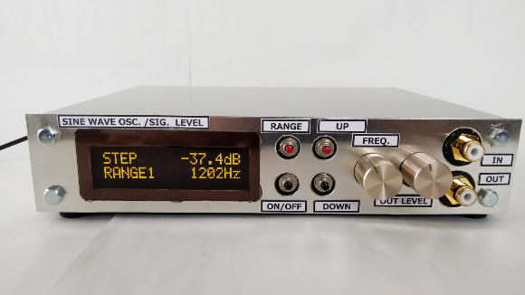 | 今回は正弦波の信号発生と信号レベル測定を内蔵しています。周波数は20Hz〜1MHz、振幅は約2Vp-pまで出力が可能です。周波数ステップはレンジによって異なりますが最小1Hzステップが可能です。オーディオ用としては充分な内容と思います。 | |