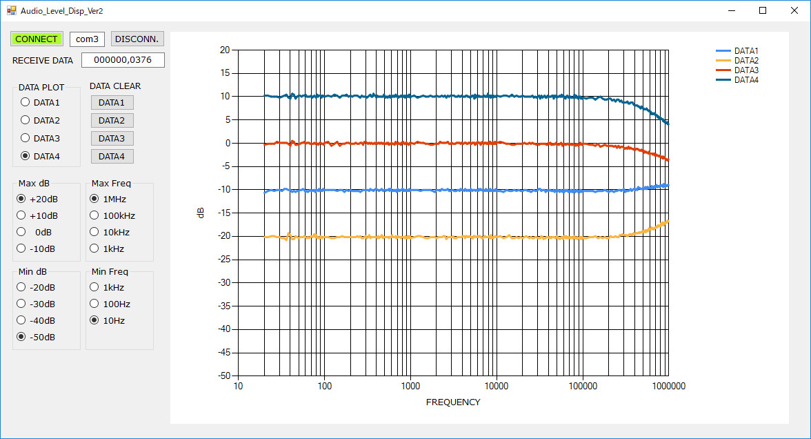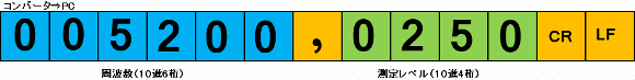 | 周波数データ3バイト、測定レベル2バイトのデータをインターフェイスに送り込みます。 | |