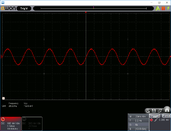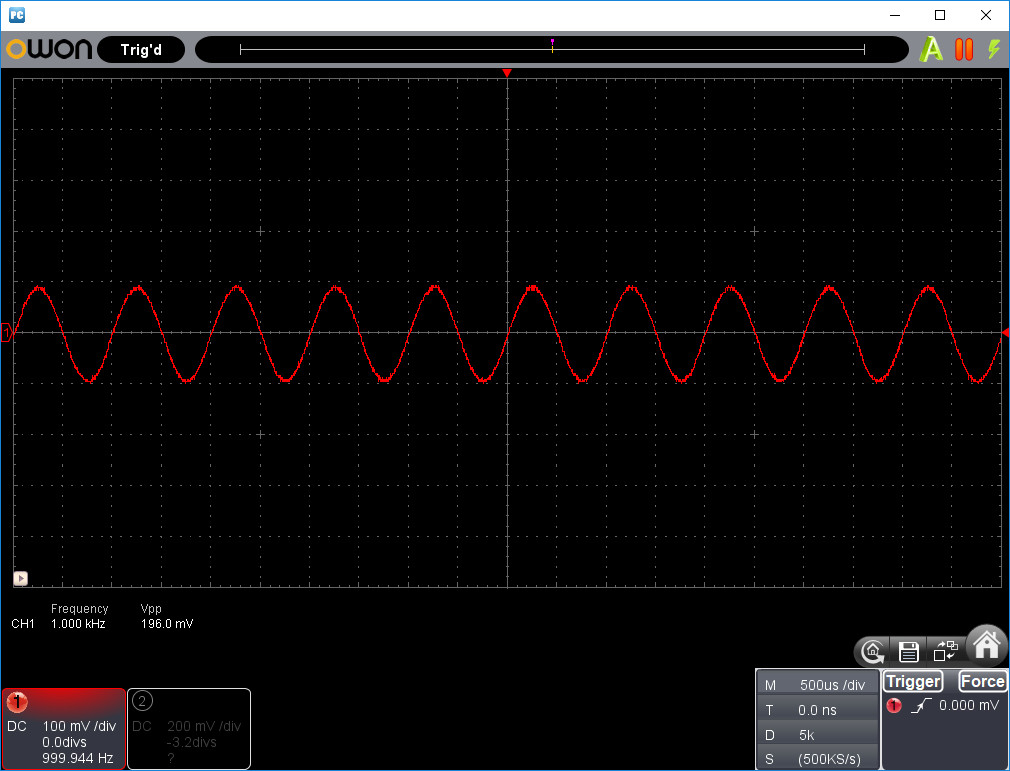 | さすがにDDSモジュールから出力される正弦波がベースですので、綺麗な波形となっております。全く問題ありませんね。大変良く出来ました。 | |
