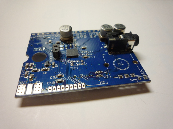 | 詳細は月刊誌の記事内容を確認頂くとして、ラジオ用ボードにはRFフロントエンドや音声コーデックICが搭載されています。このボードにロータリーエンコーダや液晶モジュールをはんだ付けしてラジオ用ボードが完成します。このラジオ用ボードをメインボードに取り付ければとりあえず実験のFMステレオラジオは完成します。 | |
