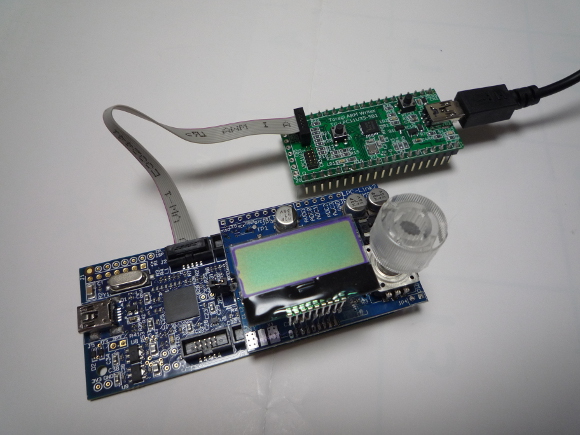 | このライタは基本的にはメインボードLPC-Link2のデバッガとして動作させる必要があります。そのためにはプログラムを書き換える必要があります。その手順などは記事やCQ出版社のWEBの内容に従って頂くとして、ポイントはそのプログラムが何かの拍子で都度リセットされて元に戻りデバッガとして動作しなくなる点です。私のやり方が間違っているかもしれませんが、何度も何度もARMライタのプログラムを書き換えて対応を行いました。 | |