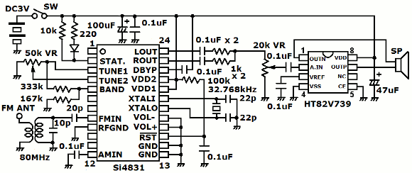 | このチップはAM/FMラジオ用ですが、今回はFM専用としました。 | |