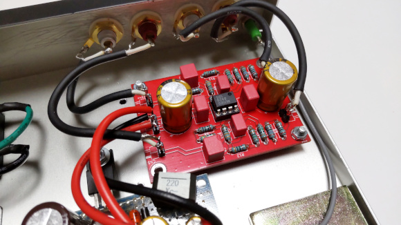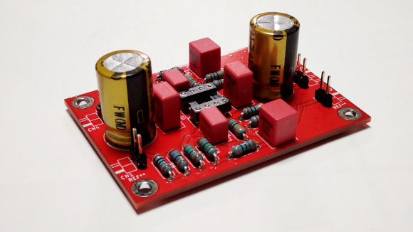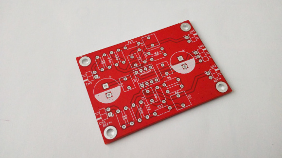| これはいいですね。いかにもフォノイコライザー基板という感じ。赤色がそれを更に盛り上げてくれています。 | |