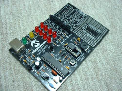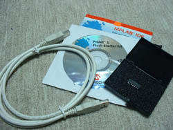 | さてこのマイコンのドキュメントをHPよりダウンロードして色々研究しました。どのようにマイコンに書き込むかをです。手持ちのライタで試しましたがうまくいきませんでした。そこで思い切ってマイクロチップよりこのマイコン用(8ピンから14ピンタイプ)のライターを購入しました。ライター自体は格安ですが、これも輸送料かかりました。インターネットの注文から5日程度で到着しました。 |