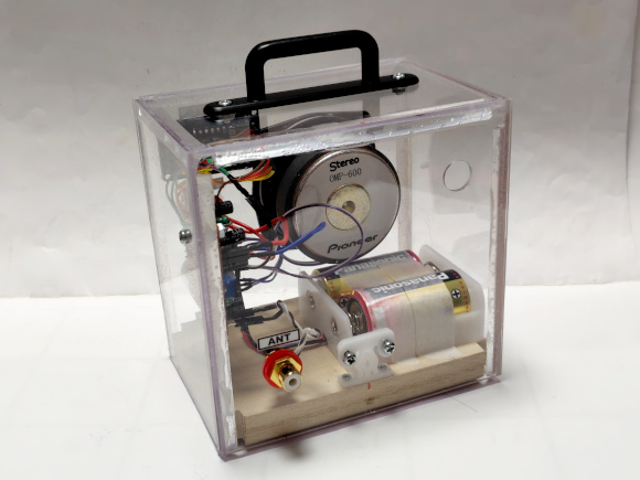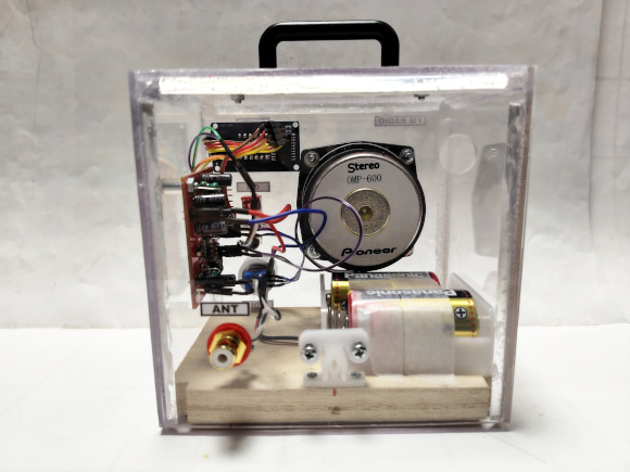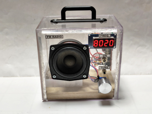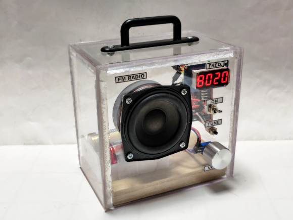 | (完成した7セグメント周波数表示のFMラジオ) | |
