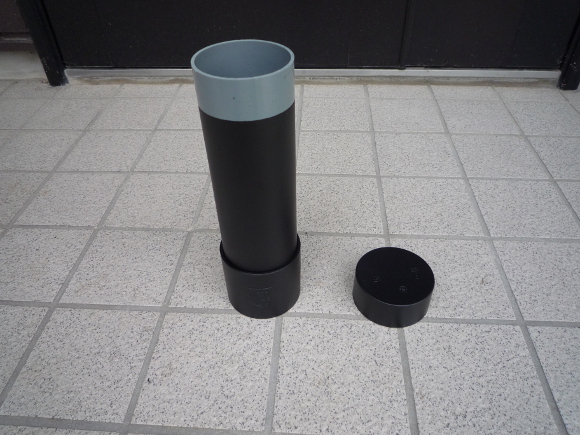 | VU75のパイプとキャップと継ぎ手を使います。挿入する部分をマスキングして黒つや消しで塗装しておきます。 | |