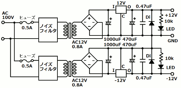 | (電源ユニット:DC±12V回路図) | |