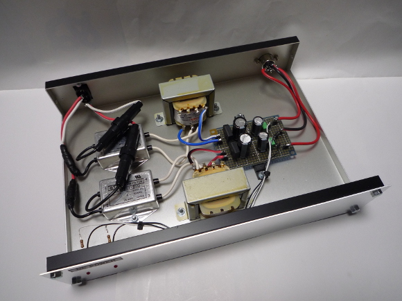 | トランスとノイズフィルタは手持ちのものを使いました。ノイズフィルタは正直どれほどの効果があるかは良く判りません。気持ち程度かもですね。中間タップがあって12Vが2系統取り出せるトランスがあれば2個も使う必要はありません。皆さんで工夫してみて下さい。 | |