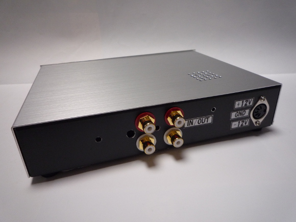 | 過去の製作のケースを流用していますので、余分な箇所に穴が開いていますが気にしないで下さいね。RCAジャックもケースから絶縁出来るタイプを使いました。 | |