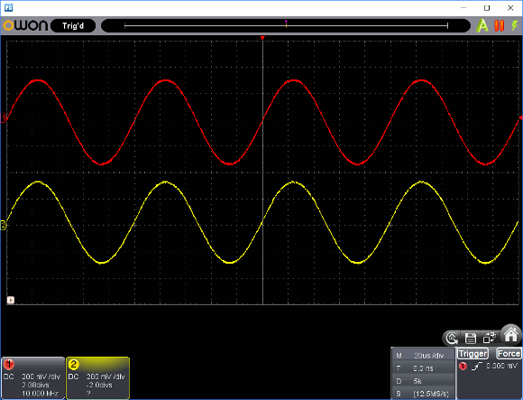 | 赤色が入力波形で黄色が出力波形です。振幅は同じになるようにヘッドフォンアンプのボリュームで調整しています。やっぱり信号が反転してるって、となった次第です。じゃ今まで聞こえ方はどうだったの?と言われても少々困りますが、何か精神上良くないので、ここはアンプを改造することにします。 | |