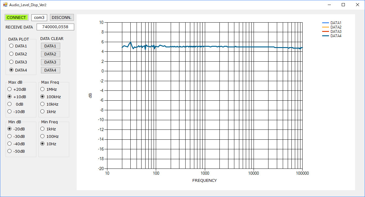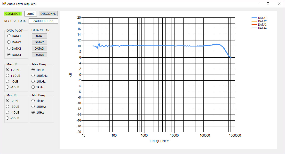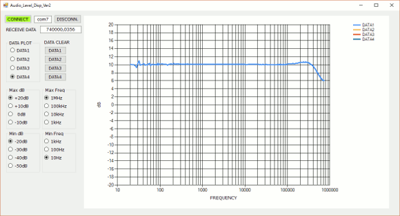 | 300kHz程度まではほぼフラットとご理解下さい。自作測定器なのでオーディオ帯域の測定には充分かと思います。 | |