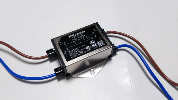 | 100V側にはノイズフィルターを取り付けます。おまじないかもしれませんが。 | |