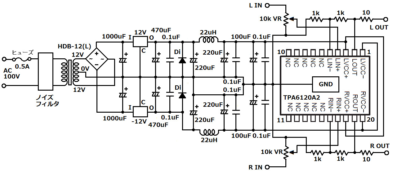 | (ヘッドフォンアンプの回路図) | |