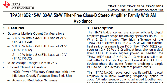 | (テキサスインスツルメンツ製TPA3116D2) | |